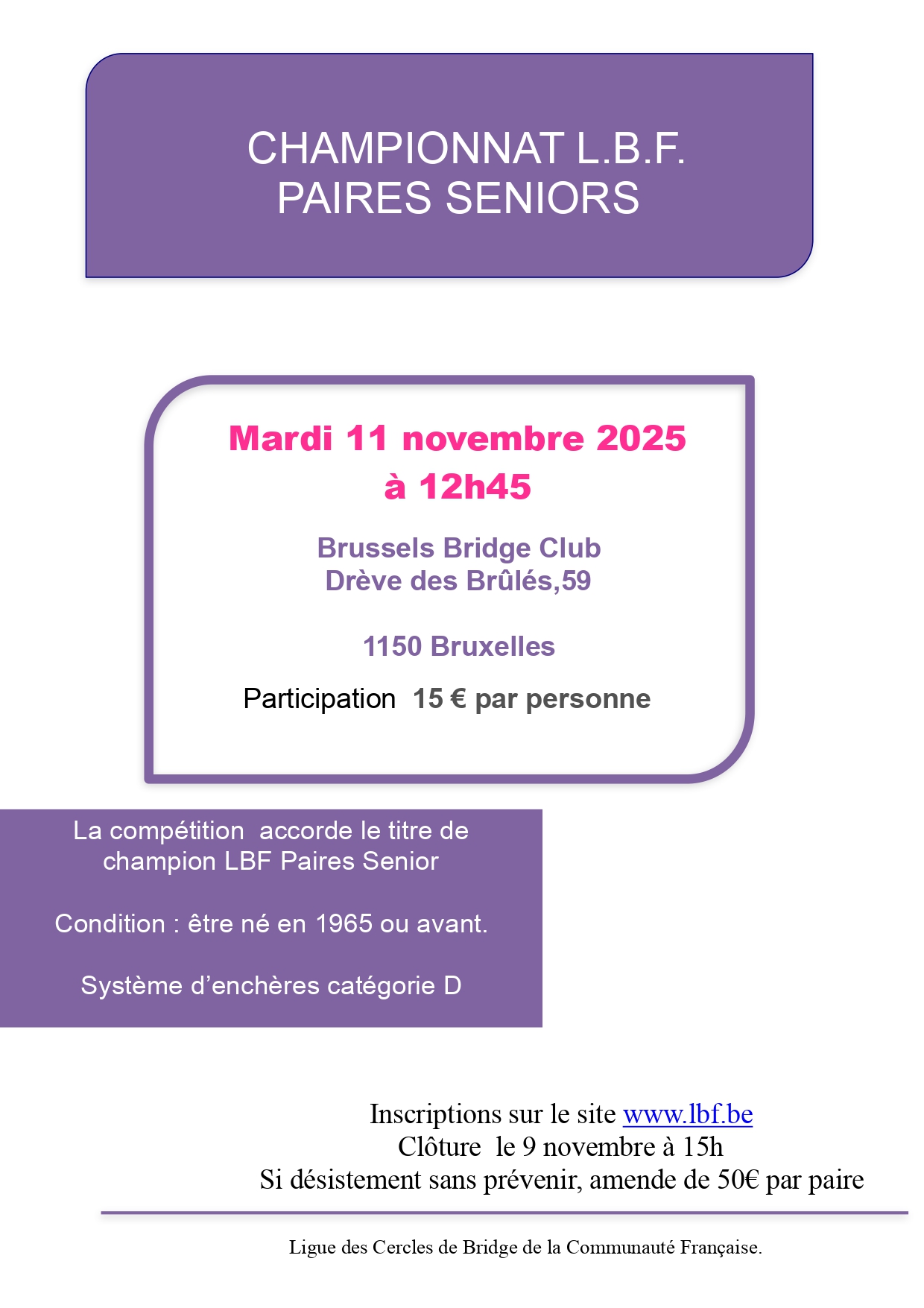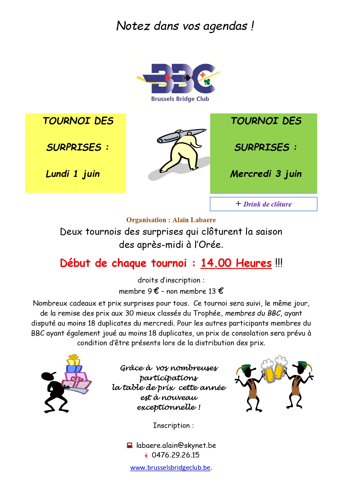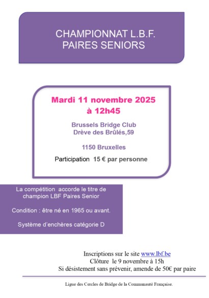 120 € – Cotisation «Deuxième Cercle de Bridge»